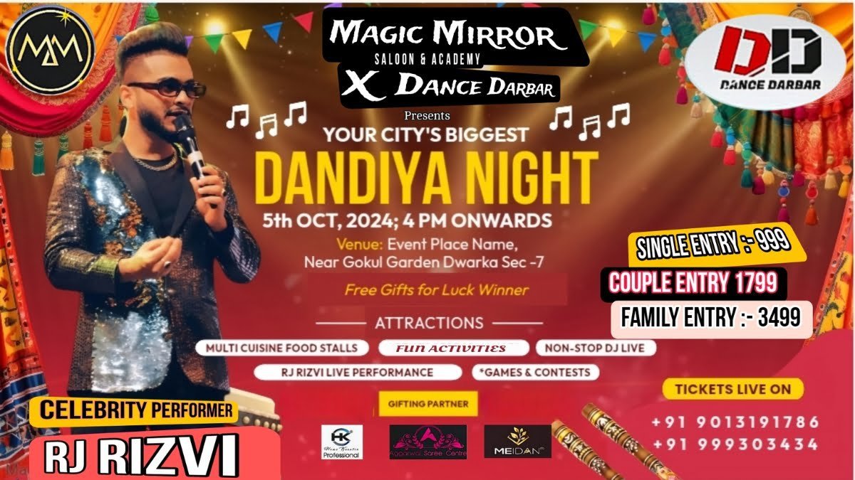 New Delhi [India], September 16: Magic Mirror Saloon & Academy, in collaboration with X Dance Darbar, is excited to announce its highly anticipated Dandiya Night, set to take place on October 5, 2024, at Ganpati Garden, Dwarka Sector 7. This vibrant event promises an evening filled with dance, music, and cultural festivities.