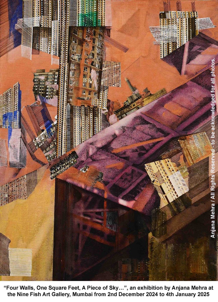 Mumbai (Maharashtra) [India],November 25: ‘’Four Walls, One Square Feet, A Piece of Sky…”, an exhibition by Anjana Mehra at the Nine Fish Art Gallery, Mumbai from 2nd December 2024 to 4th January 2025is a mixed media visual exploration of the transactional unit of real estate space in which entire generations of urban dwellers live out their lives, dreams and dashed hopes.